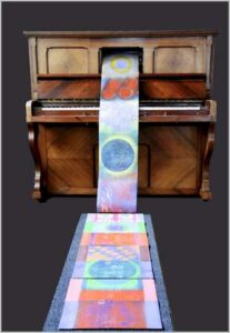 Mon activité consiste à reproduire sur des surfaces peintes la structure géométrique et colorée des rouleaux. La caractéristique originale et innovante de cette activité est de faire revivre par l’intermédiaire de l’art actuel un instrument de musique original et de réputation internationale (Etats-Unis, Allemagne, Suisse, Japon) mais qui a tendance à disparaître en France ; faire travailler des compositeurs de nationalité étrangère pour des projets de création dans le but de valoriser cet instrument singulier.