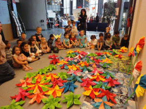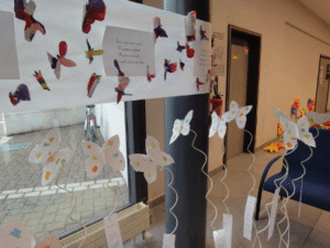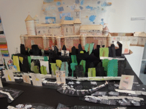 On a aussi regardé le travail des autres classes : la maison des lettres, le livre des secrets, les bateaux en papier, la maquette du château du Haut Koenigsbourg, les papillons en papier recyclé,…