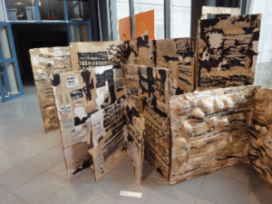 Ensuite on est allé au Frac. On a vu nos bandes de boite à musique accrochées au mur. Mais on a aussi pu voir le film qu’avait tourné Mr Reha Yünlüel où on expliquait les 4 étapes de notre projet. C’était rigolo de se voir et de s’entendre à la télé.